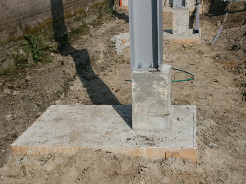 Een solide basis is essentieel. Afhankelijk van de ondergrond bepalen we het juiste funderingstype – van betonpoeren tot heipalen met ringbalk. Vervolgens plaatsen we een duurzame staalconstructie, precies op maat en volgens berekening, waarmee de hal vorm krijgt.