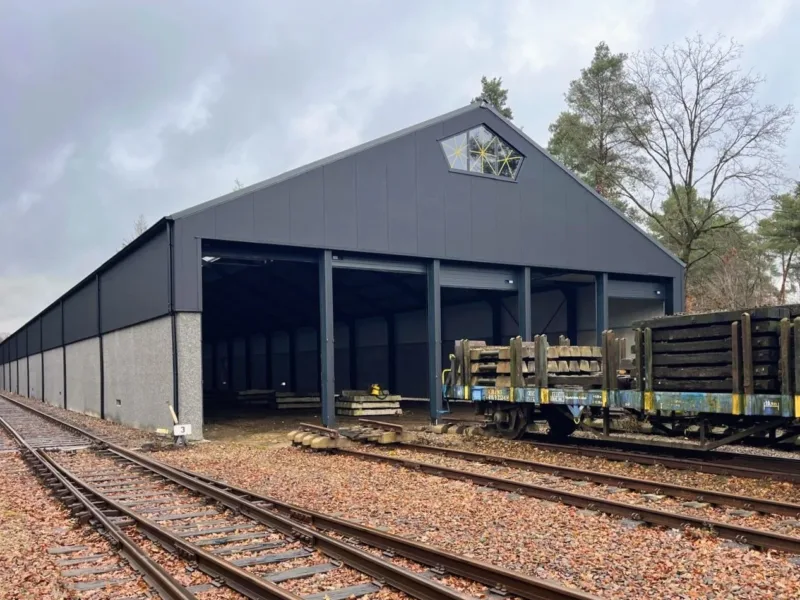 De loods is ontworpen met een historische uitstraling die perfect aansluit bij de omgeving. Dankzij deze uitbreiding kunnen waardevolle rijtuigen en materialen voortaan beter worden beschermd, wat bijdraagt aan het behoud en de toekomstbestendigheid van het spoorwegerfgoed.