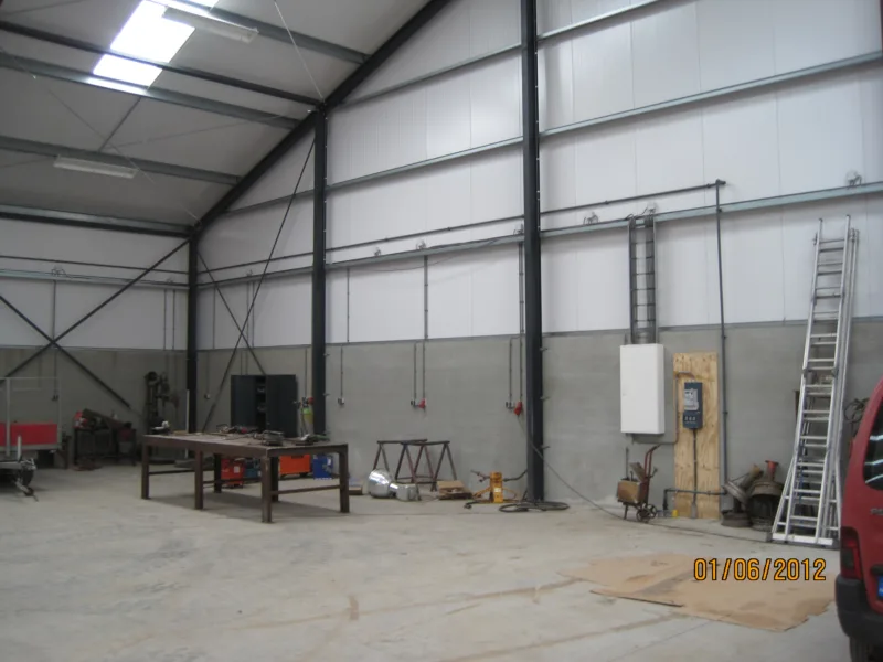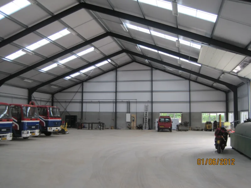 Wij hebben voor de opdrachtgever een ruim opgezette loods gebouwd met allemaal brede deuren. Hierdoor kan al het materieel snel en efficiënt worden binnengezet.