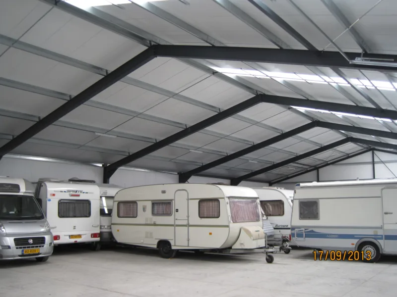 Wij zijn erg blij met de nieuwe geïsoleerde caravanstalling waardoor wij door de brede deuren gemakkelijk twee caravans naast elkaar kunnen stallen.