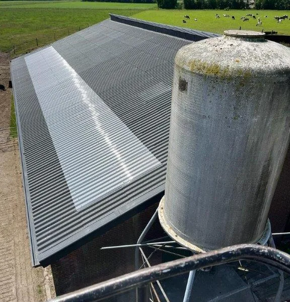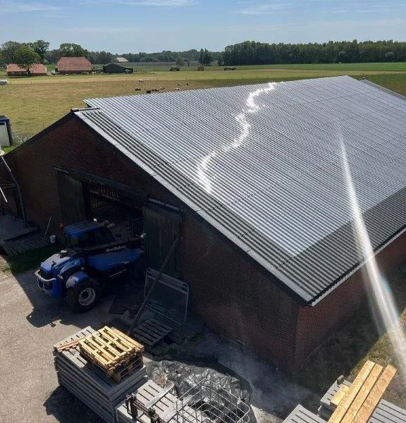 In Onstwedde hebben we een dakrenovatie uitgevoerd op een agrarische stal. Hierbij zijn lichtdoorlatende golfplaten geplaatst, wat zorgt voor natuurlijke lichtinval en een efficiënte, duurzame oplossing voor de agrarische sector.
