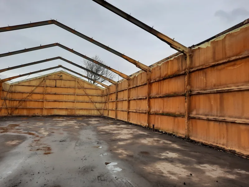 In Wieringerwerf hebben we een dak- en gevelrenovatie uitgevoerd aan een schuur. De verrotte houten gordingen zijn vervangen en het deels ingestorte dak is hersteld. Na het verwijderen van de bestaande golfplaten en gordingen, hebben we nieuwe gordingen en geïsoleerde Joris Ide dakpanelen geplaatst. Daarnaast zijn de drie voorgevels bekleed met stalen potdeksel profielplaten met houtnerf coating en zijn de loopdeuren vernieuwd. De schuur is hiermee weer klaar voor de toekomst.